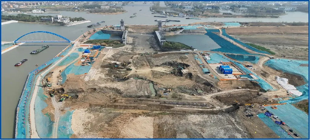 淮河入海水道二期工程是国务院统一部署的172项重大水利工程之一,是淮河流域防洪体系的重点控制标段,总投资17亿元人民币。项目建成后,将进一步提高淮河入海水道泄洪量,有效改善淮北排涝条件,保护洪泽湖及下游地区2000多万人口、3000多万亩耕地防洪安全,为淮河流域经济社会高质量发展保驾护航。